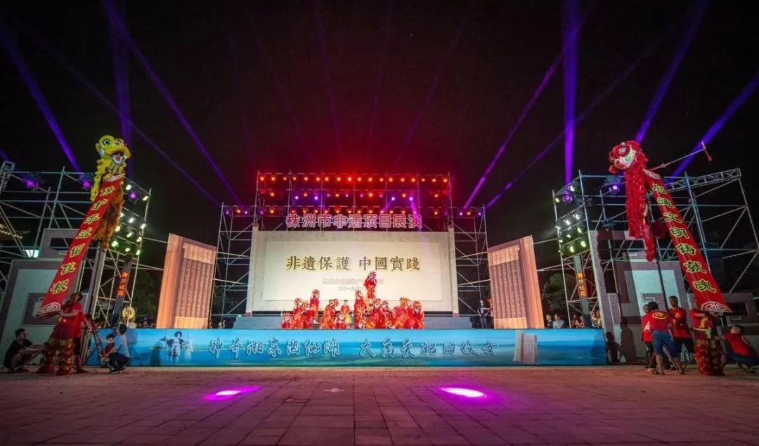 当晚,酒埠江景区微风轻拂,灯火璀璨,热闹的游客中心广场人头涌动,迎来了2019年全国“文化和自然遗产日”株洲市非遗项目展演盛大的非遗文艺演出晚会。